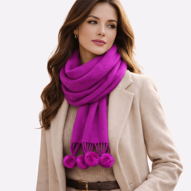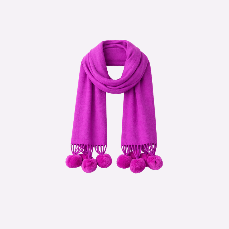 Fuchsia Pom-Pom Muffler For Women, Winter Neck Scarf Soft Scarf
