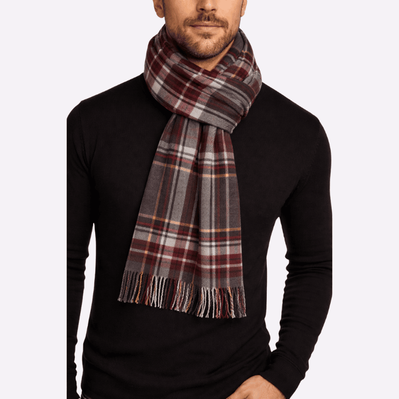 Charcoal Wine Classic Check Fringed Muffler For Men & Women