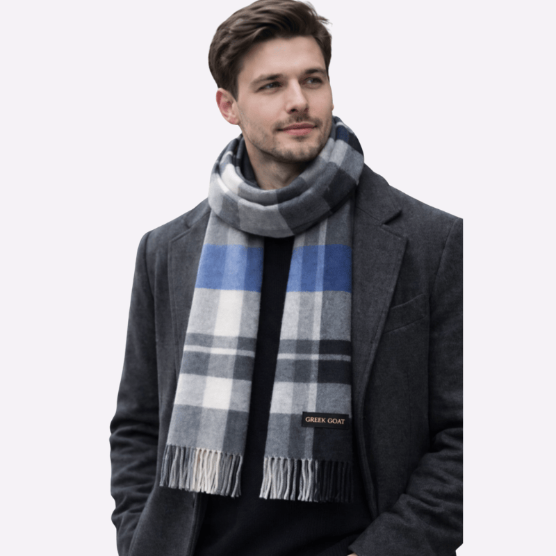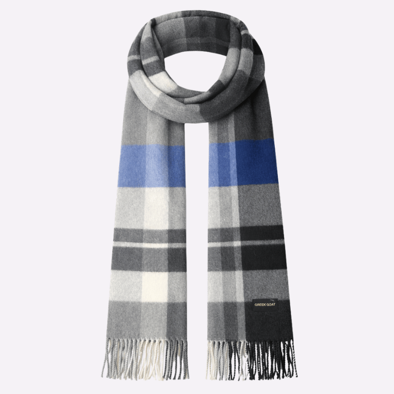 Grey Blue Classic Check Fringed Muffler For Men & Women
